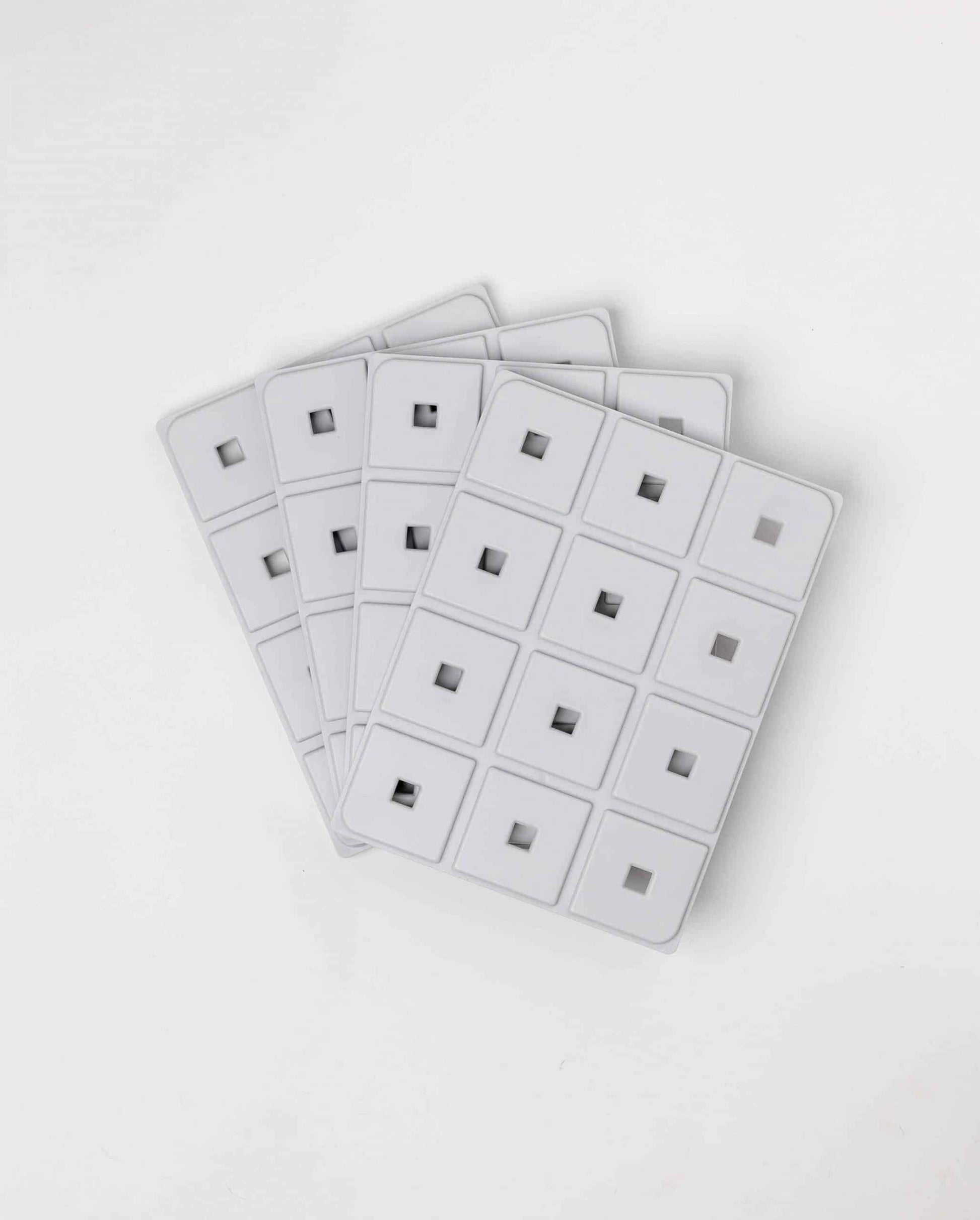 Hver base har 12 pladser, hvor du kan sætte Pawzles fast. Det giver mulighed for at sammensætte både mindre og større legeflader – fra lette opgaver til komplekse udfordringer. Du kan bruge én base alene eller kombinere flere for at udvide legen og øge sværhedsgraden.