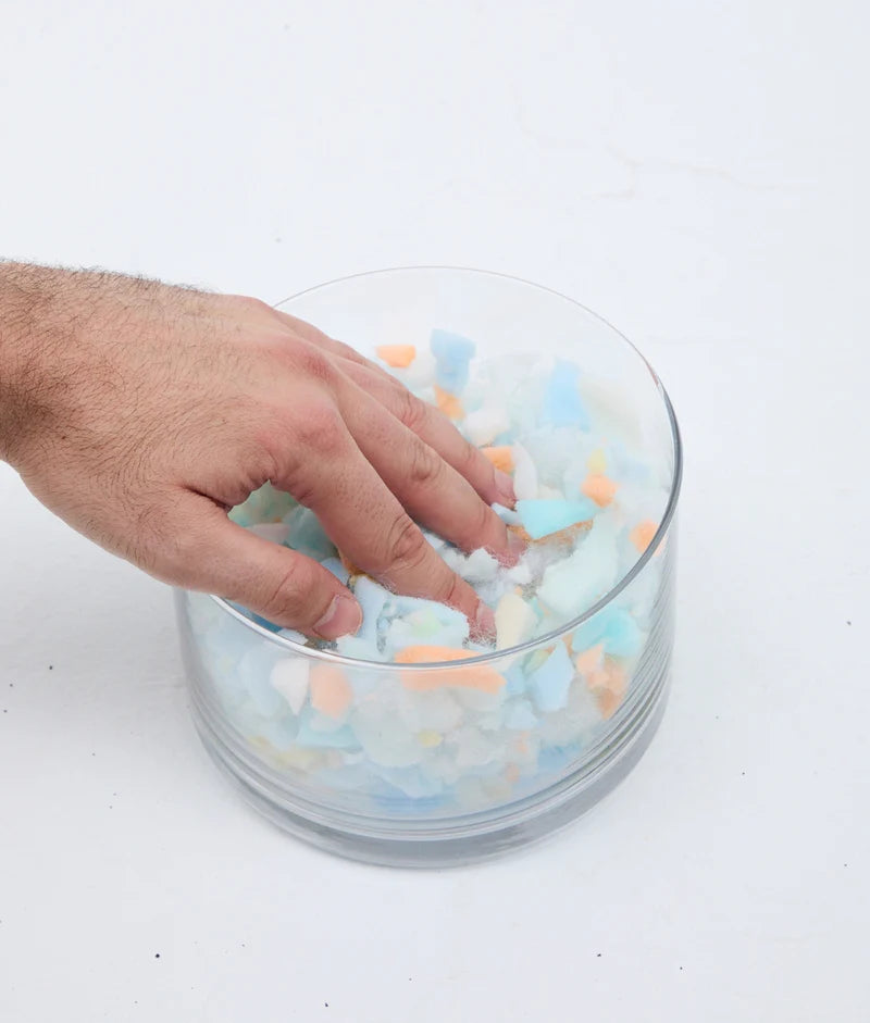 Fyldet består af genanvendt skum, som giver støtte og former sig naturligt efter hundens krop. Når hunden rejser sig, vender puden automatisk tilbage til sin oprindelige form, så den bevarer både udseende og form over tid.